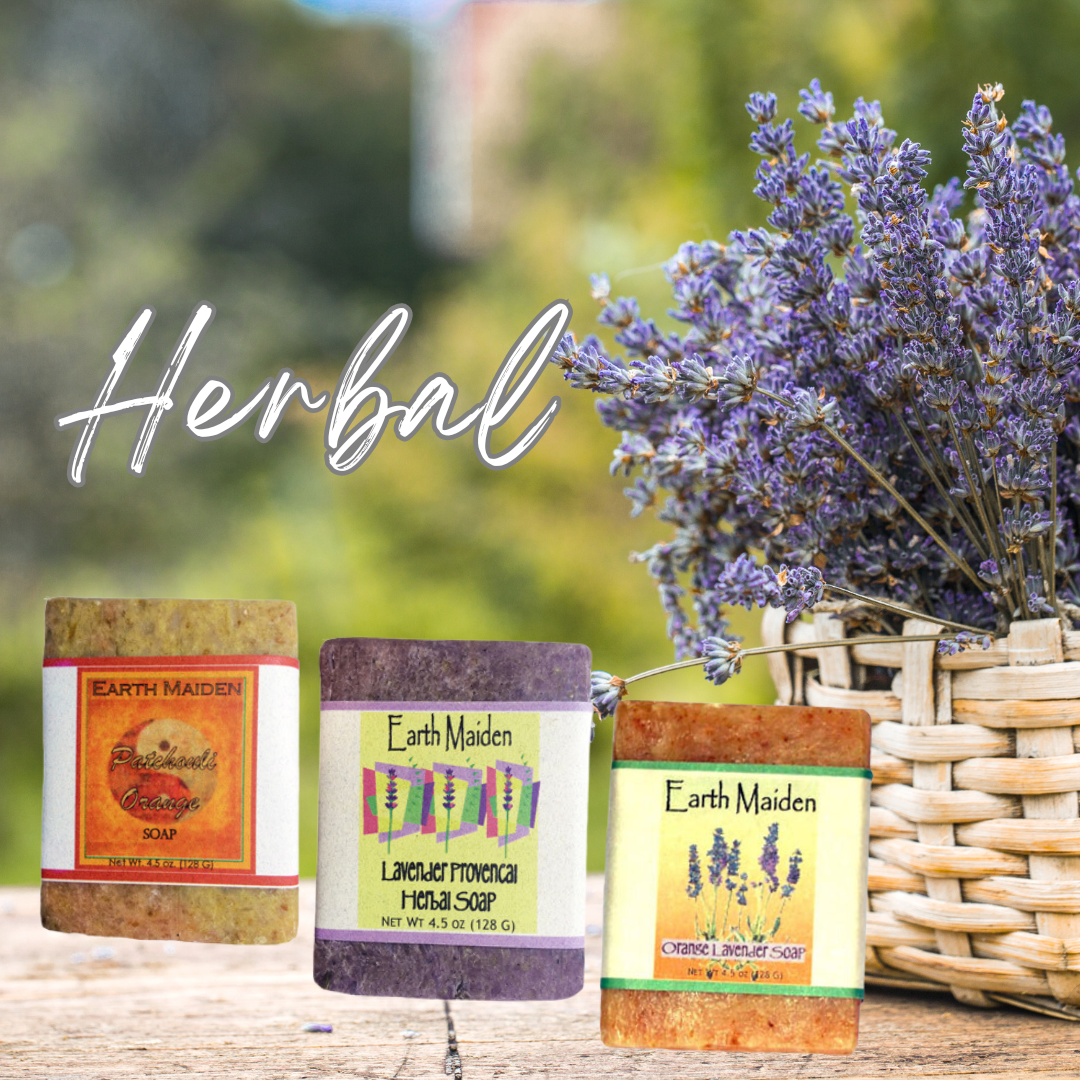 This soap collection contains both Naturally scented (essential oils)Â and Nearly Natural scented (fragrance oils or combination of essential and fragrance oils). For a full photo, description and ingredients listing, click on the soap.