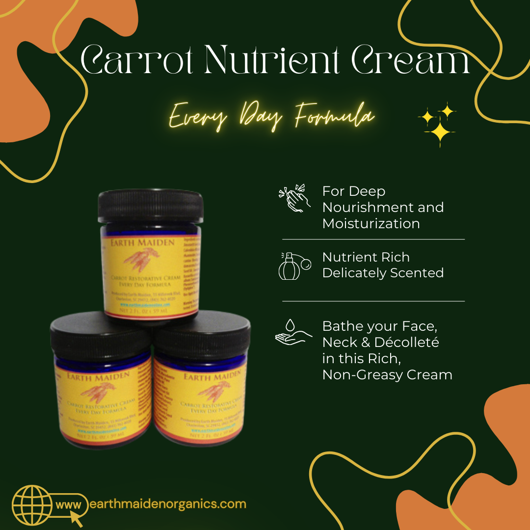 Nourish and protect your skin daily with Earth Maiden's Carrot Nutritive Cream. This luxuriously-textured moisturizer contains organic and natural ingredients to help skin feel soft, supple and hydrated. Enhanced with subtle aromatics from pure essential oils and CO2 extracts, this facial cream provides an indulgent experience for your skin.
